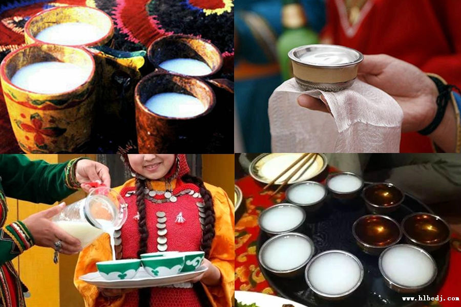 馬奶酒蒙語稱作乞戈或艾日戈,是用馬奶釀制的一種酒精含量頗小的飲料。制法是將鮮馬奶裝入生皮囊中,掛在向陽處,用一根特制的木棍每日攪拌數(shù)次,使馬奶逐漸發(fā)酵變酸。當(dāng)馬奶變成清淡透明,味道酸辣時(shí),即成為馬奶酒,這是蒙古族先祖遺留下來的珍貴遺產(chǎn)。